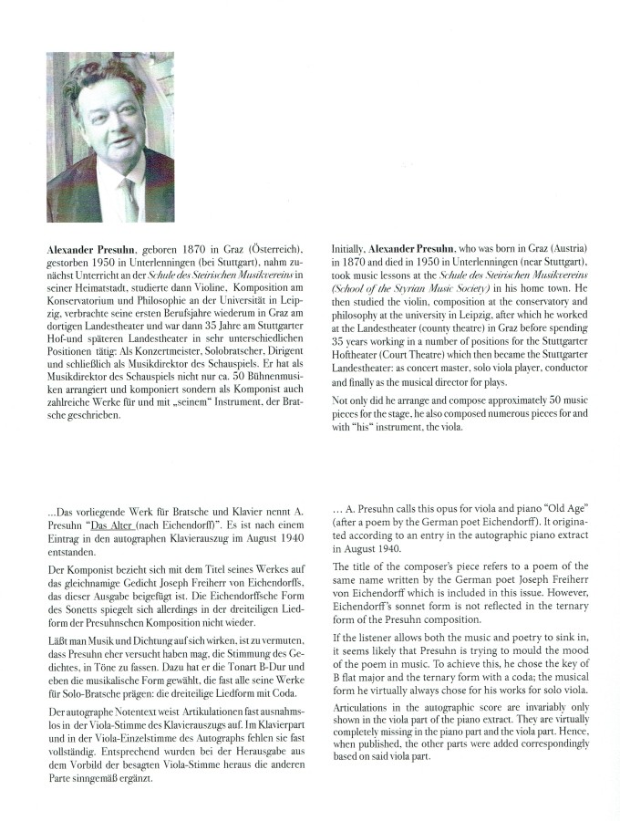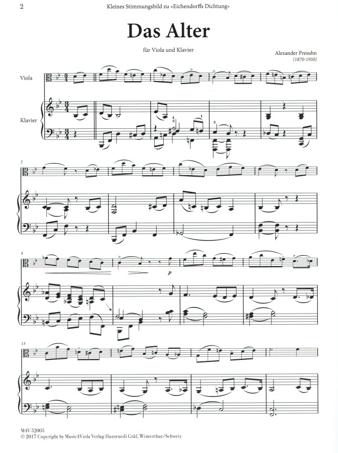 Das Alter, kleines Stimmungsbild zu Eichendorffs Dichtung, B-dur, für Bratsche und Klavier
