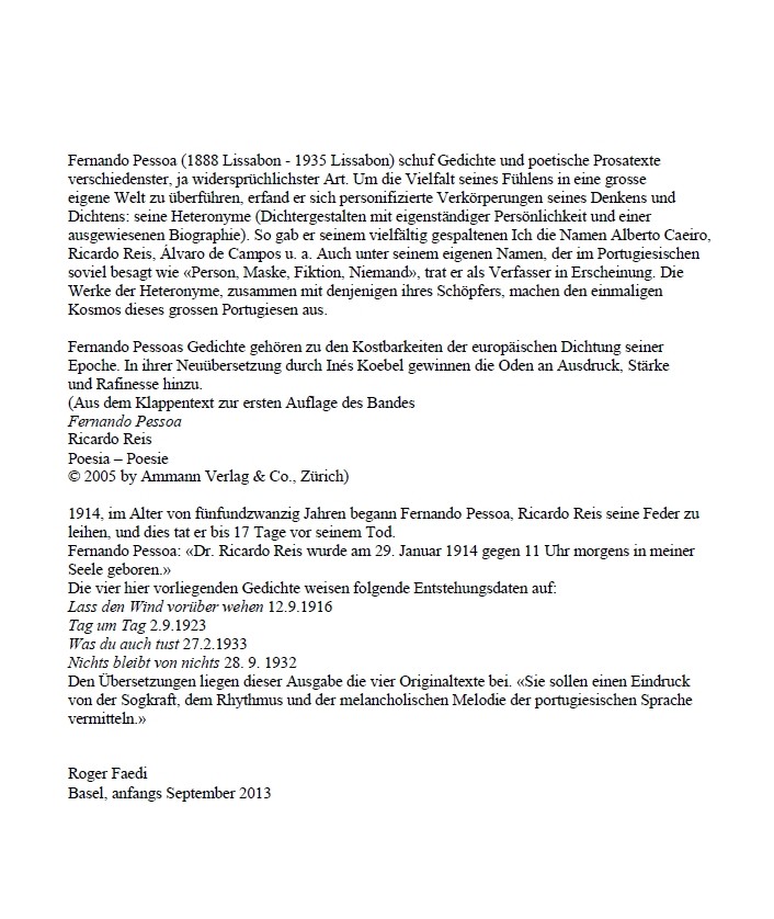 auf Gedichte von Fernando Pessoa/Ricardo Reis