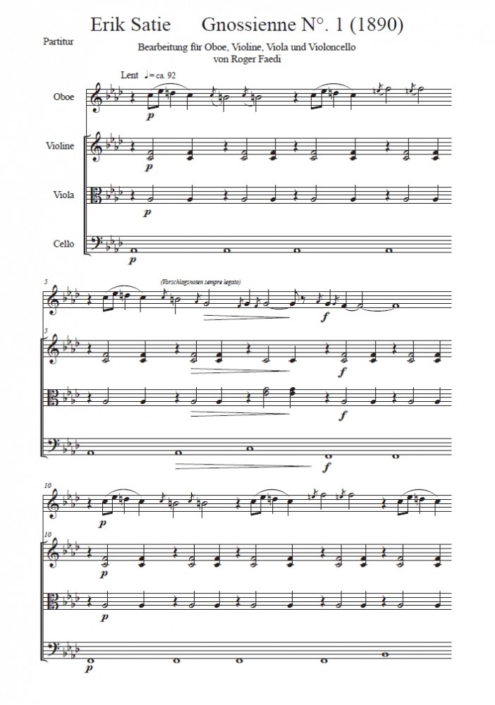 Gymnopédie Nr. 1, arrangiert für Violine (Viola, Klarinette) und Klavier