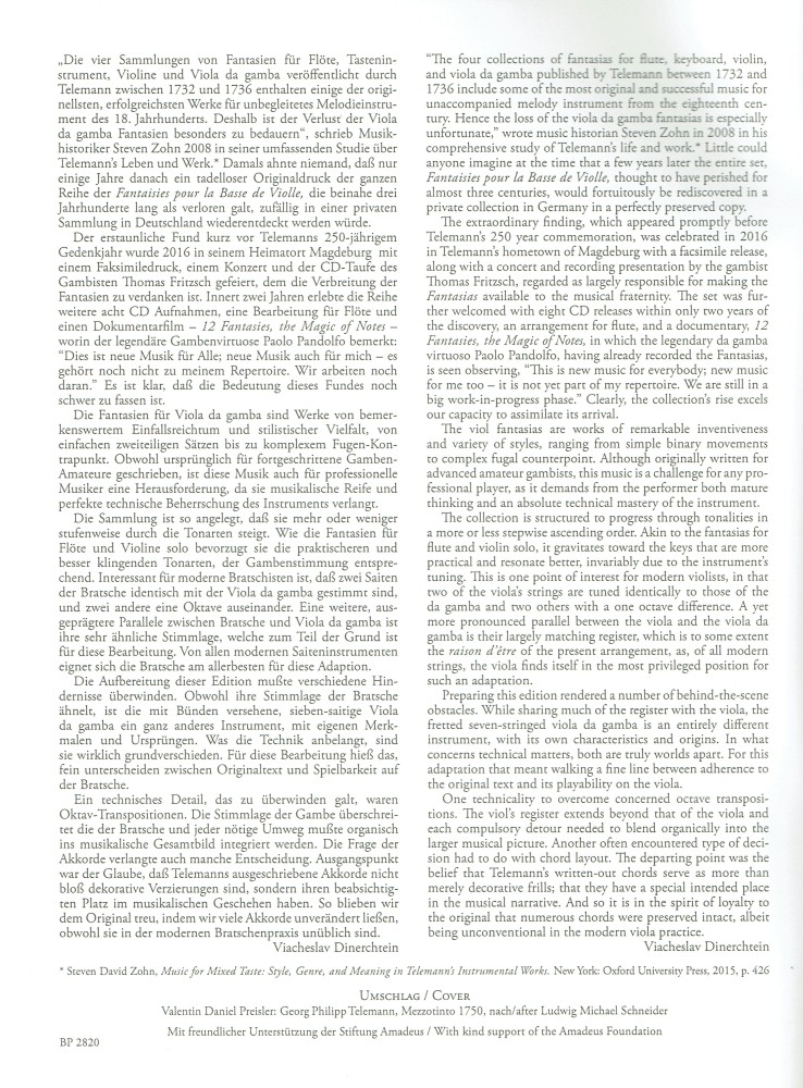12 Fantasien, TWV 40:26-37, für Bratsche solo