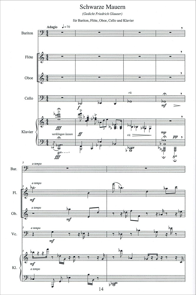 Bariton, Flöte, Oboe, Violoncello, Klavier