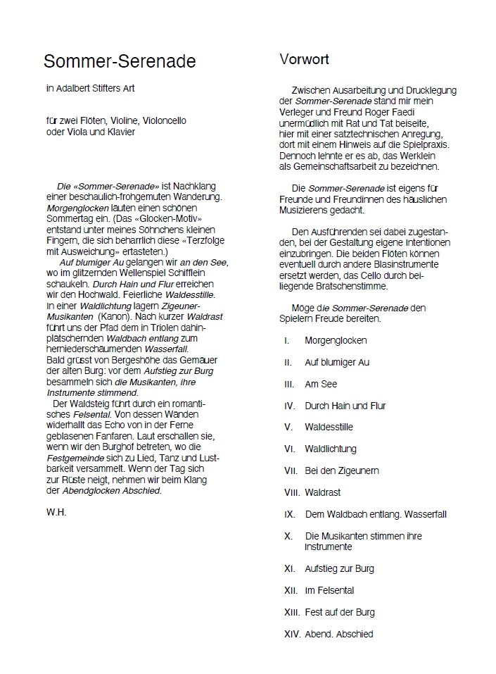 Sommer-Serenade, für 2 Flöten, Violine, Violoncello und Klavier