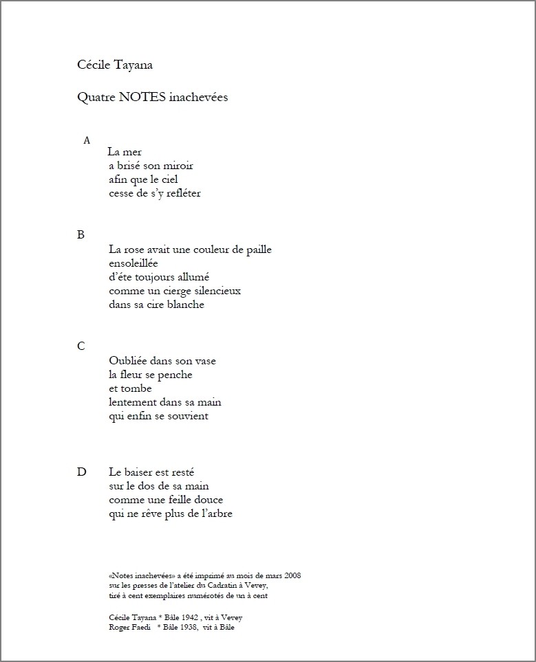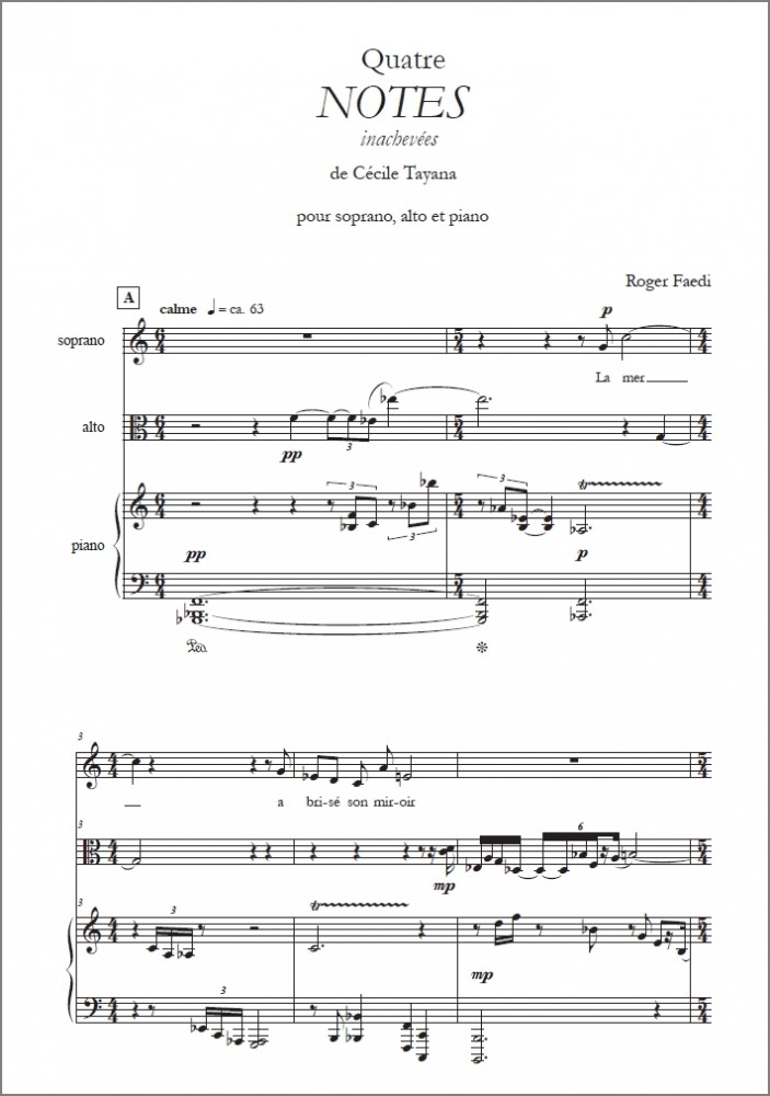 Quatre NOTES inachevées, op. 57, für Sopran, Viola und Klavier