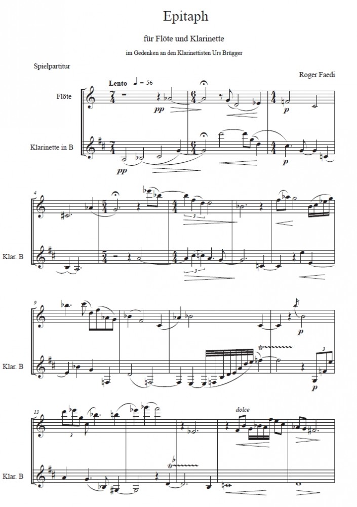 Epitaph, op. 75, für Flöte und Klarinette